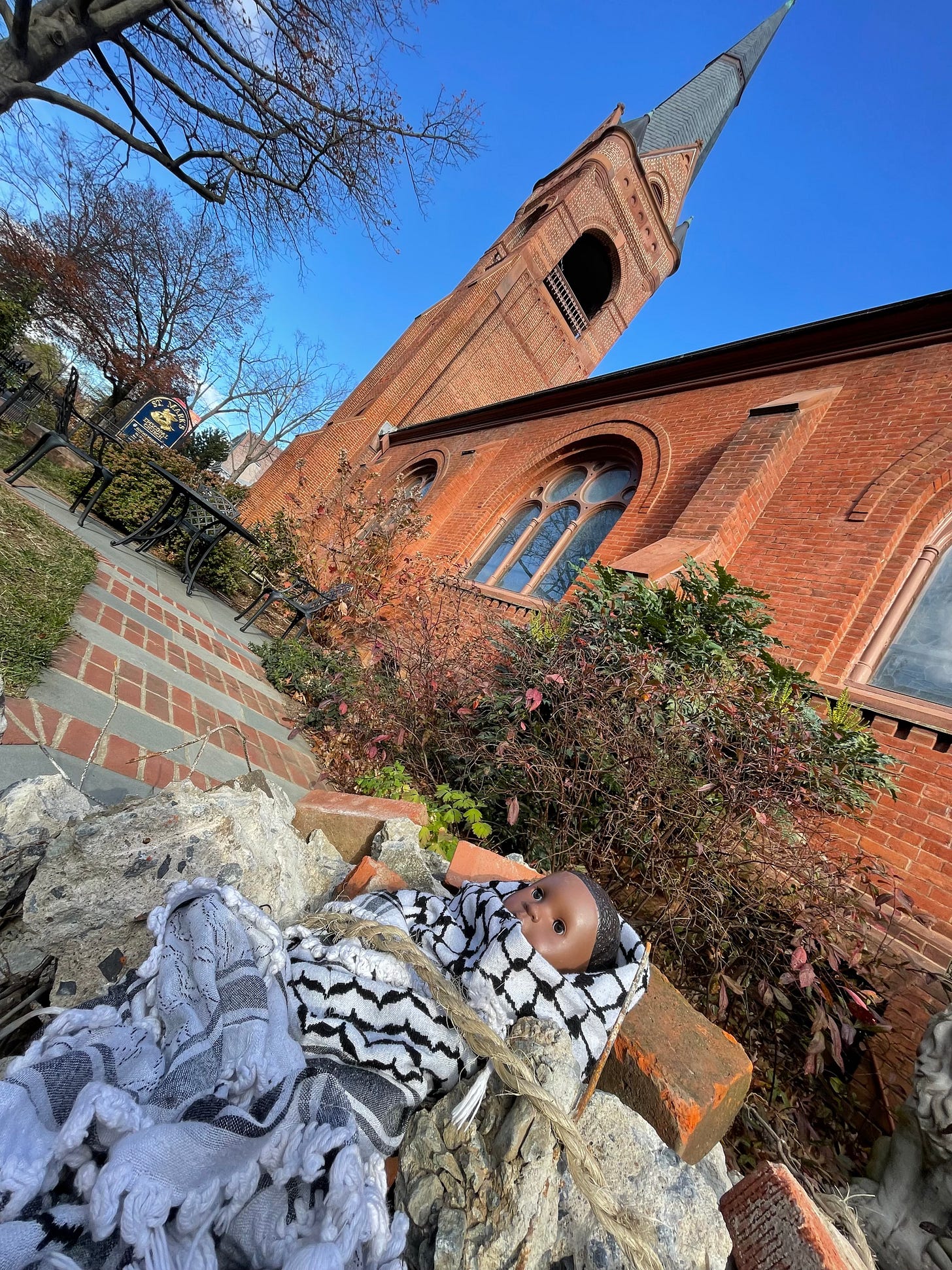 For example, I was part of a group that built this Christ in the Rubble nativity scene modeled after the one set up in the Lutheran Christmas Church in Bethlehem last year. It is discussed in this article from Religion News. (Edited to add: ignore that line in there about being a buffer if it freaks you out. What we are doing is totally not that dramatic I promise.)